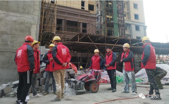 七彩貝殼香港集團公司董事長郭朝連先生帶公司部門指導到河南洛陽工地停止慰勞。